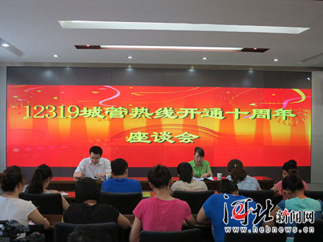 | 今日下午,石家庄12319城管热线开通十周年座谈会现场,热线工作人员一起为12319热线“过生日”。